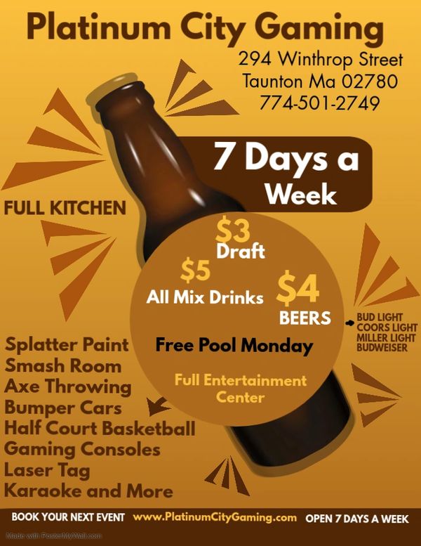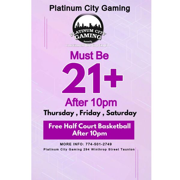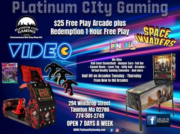 At Platinum City, we offer a fun, clean, and safe environment for all ages. Our impressive 7,300 square ft. facility, located at 294 Winthrop Street, Taunton, MA 02780, is perfect for enjoying a variety of activities. Don't forget to check out our Platinum City Gaming photos to see the excitement we offer at Platinum Gaming.